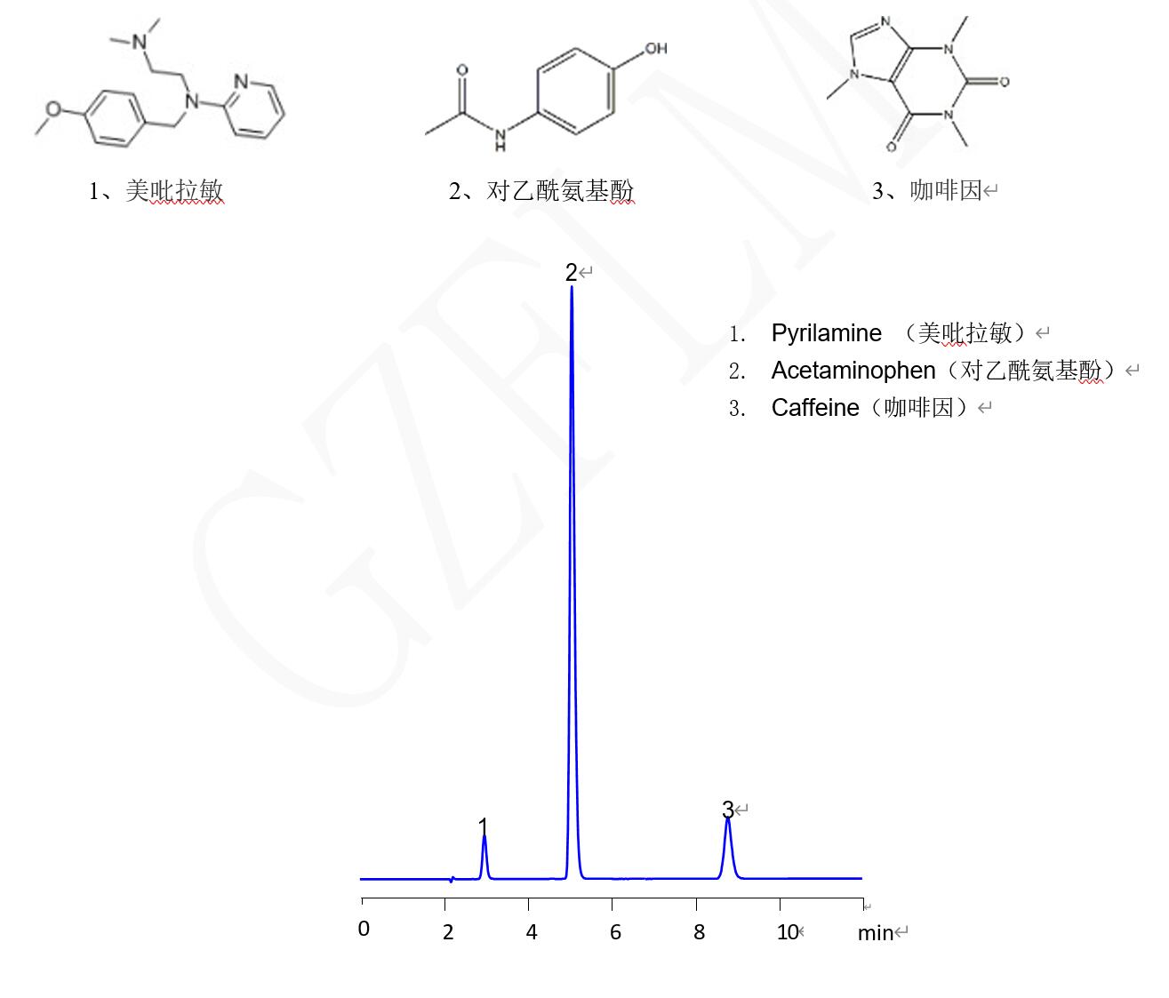 1、美吡拉敏 2、對乙酰氨基酚 3、咖啡因