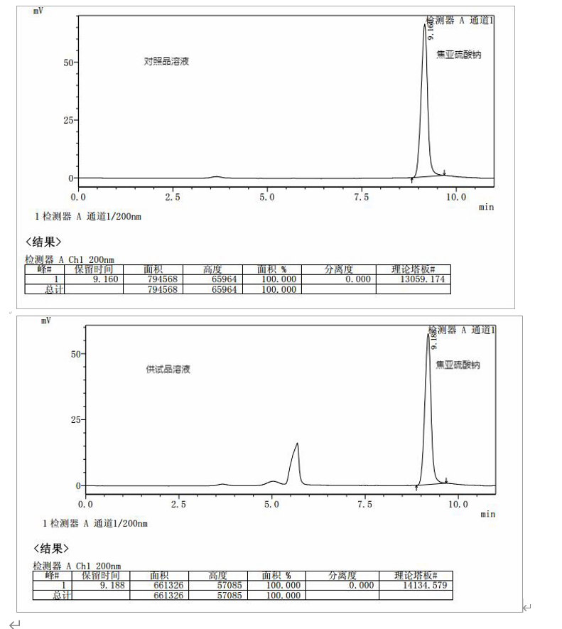 App ID: FLM-M240003 MARS MOA 柱對(duì)焦亞硫酸鈉的檢測(cè) 色譜柱:MARS MOA 10um 300*7.8mm (貨號(hào):MH-1138-KONU) 流速:0.7 mL/min 檢測(cè):uv200nm 進(jìn)樣量:20ul 柱溫:50°C 流動(dòng)相:4mmol/L 磷酸溶液-乙腈(85:15) 供試品:精密量取硫酸阿米卡星注射液 1ml,置 20ml 量瓶中,用流動(dòng)相稀釋至刻度,搖勻