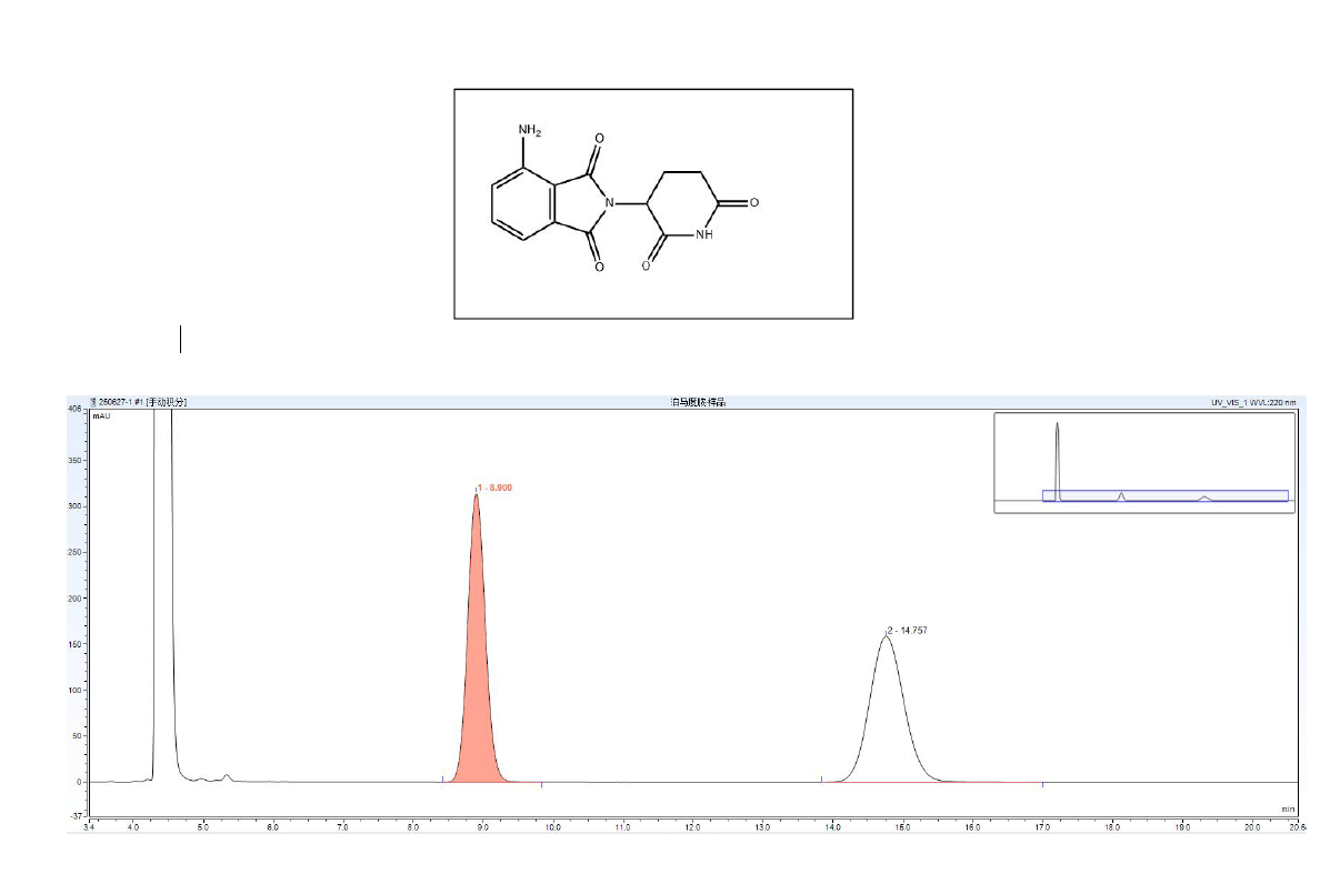App ID: FLM-B250011 Chiral NQ(2)-RH 手性色譜柱對(duì)泊馬度胺的檢測(cè) 方法:自定 色譜柱: Chiral NQ(2)-RH 5u 250*4.6mm (貨號(hào):FMG-AC5-A06-R) 流速:0.8mL/min 檢測(cè):UV 220nm 25oC 樣品濃度:N/A 進(jìn)樣量:2uL 流動(dòng)相:咨詢銷售 色譜圖: ![]() |