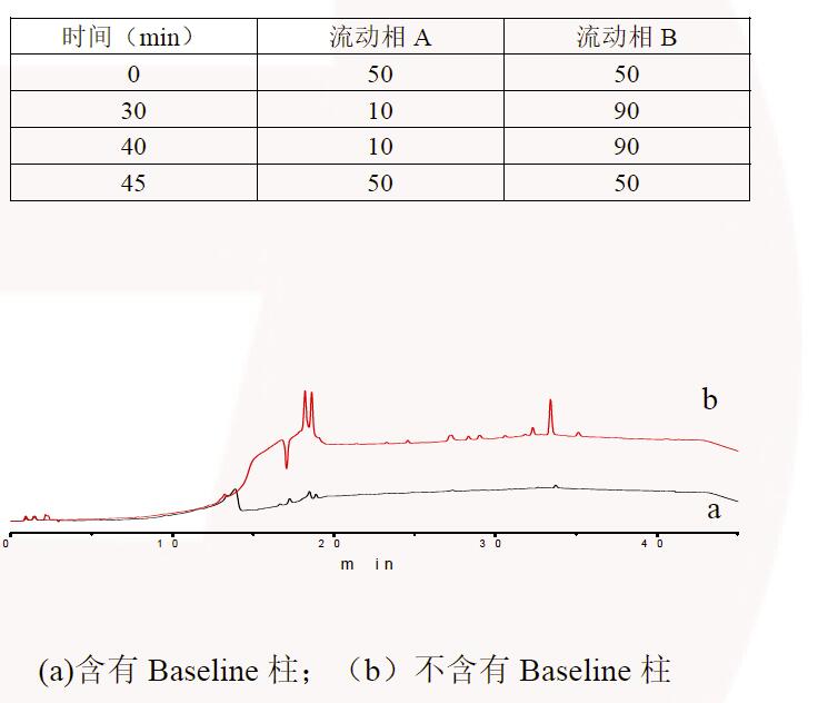 案例 2 案例展示中,已充分展現(xiàn) Baseline 基線穩(wěn)定柱的功用與意義。 在使用過(guò)程中還必須注意以下情況: 1、不能把Baseline 柱當(dāng)做保護(hù)柱接于色譜柱前面使用。因?yàn)?Baseline 特殊的材料,如果當(dāng)保護(hù)柱用,有可能把分析工作者的分析物也吸附掉產(chǎn)生不出峰的情況;