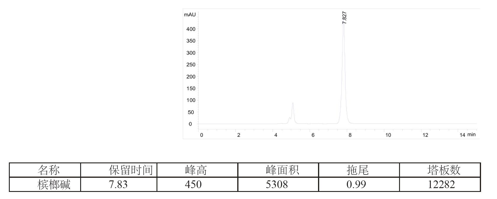 樣品:0.1 mg/mL 檳榔堿溶于流動相中
