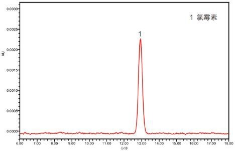 2、添加水平為 0.5mg/kg 豬肉基質中氯霉素(CAP)檢測色譜圖