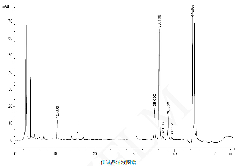 20-55min,250nm. 柱溫:45℃