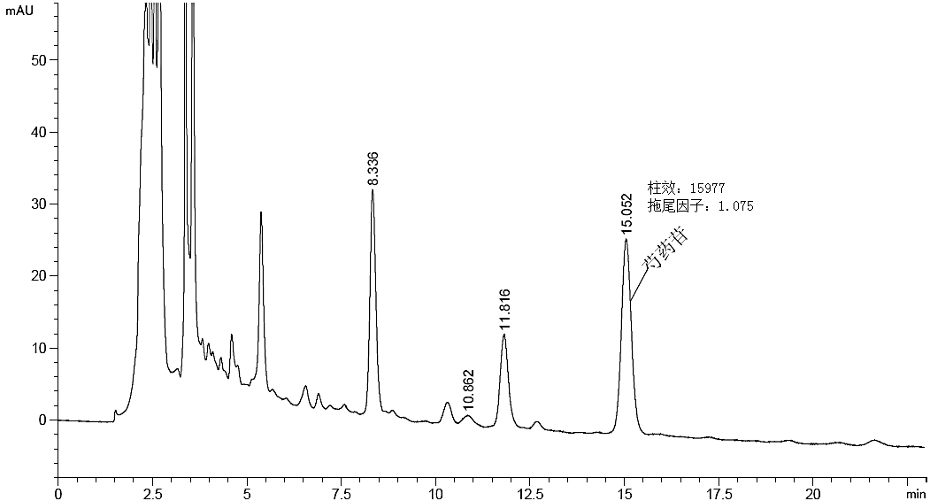 流動(dòng)相:[四氫呋喃-乙腈-甲醇(1:8:4)]-0.05%磷酸溶液(8:92)