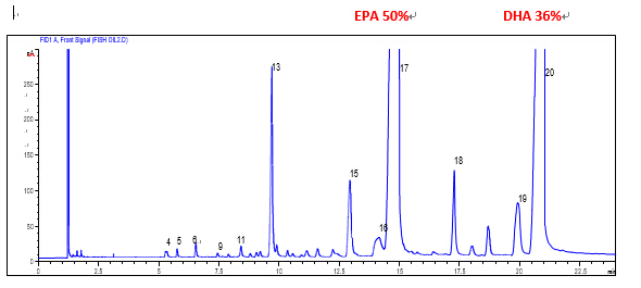 實驗證明采用菲羅門的 FB-FameWax 氣相色譜柱能夠很好的分離魚油中相應目標成份。