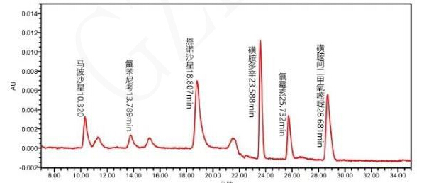 本方法適用于豬肉中喹諾酮、氯霉素及磺胺類獸藥多殘留的HPLC檢測及確證