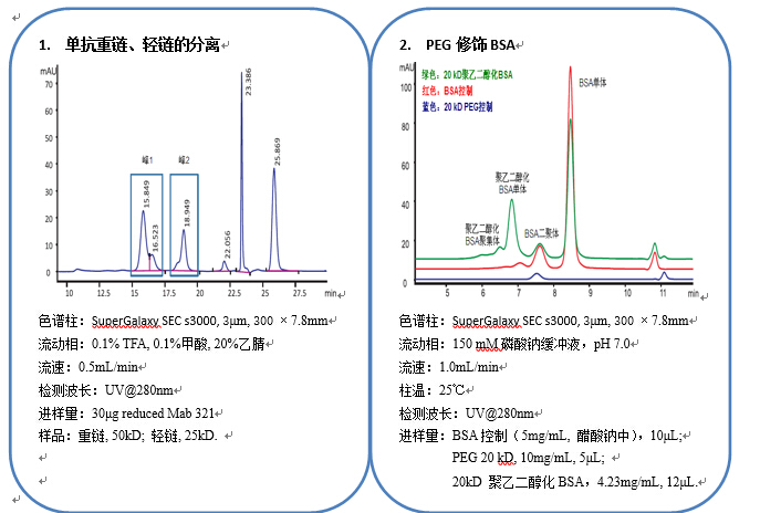 SuperGalaxy系列體積排阻色譜柱采用單分散、球形、表面鍵合了一層納米厚度中性親水薄膜的3μm硅膠作為填料。獨有的表面鍵合技術保證了填料表面鍵合的最大化,使其具有極高的化學穩定性和最小的非特異性吸附。