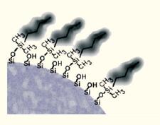 圖9. 通過利用有機氯硅烷將疏水性配體化學鍵合到硅膠表面形成了疏水界面。